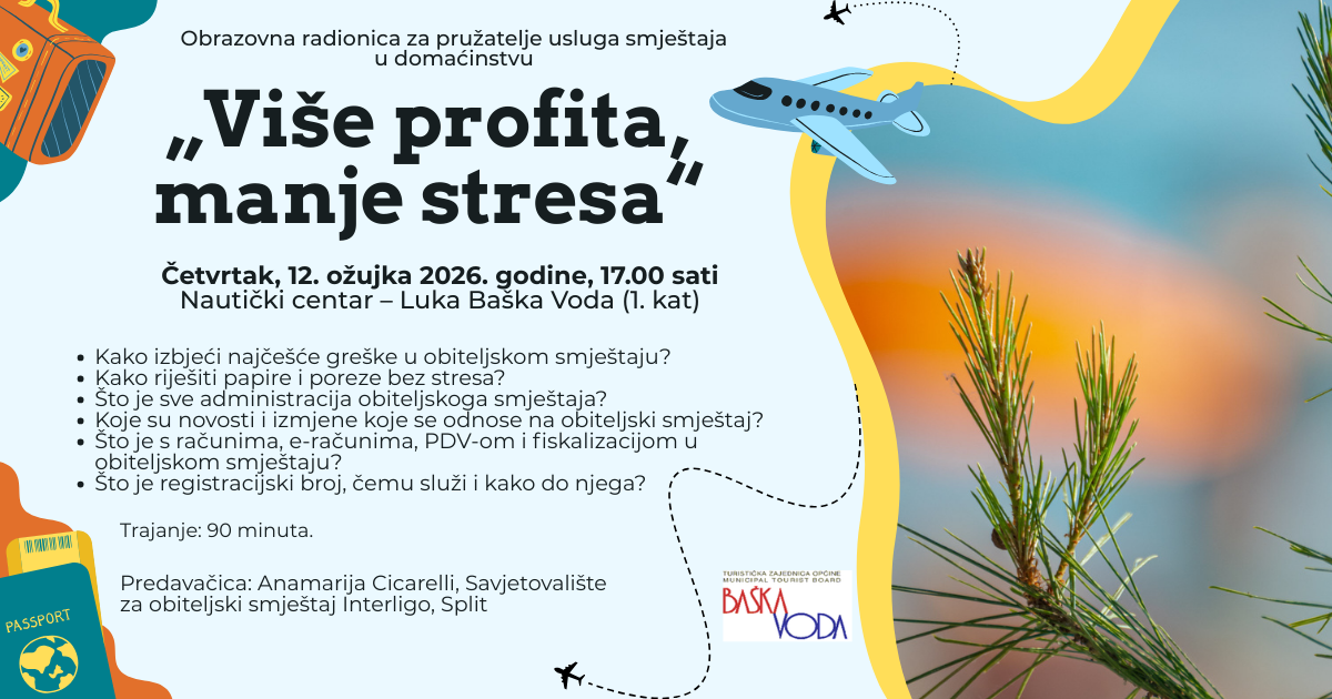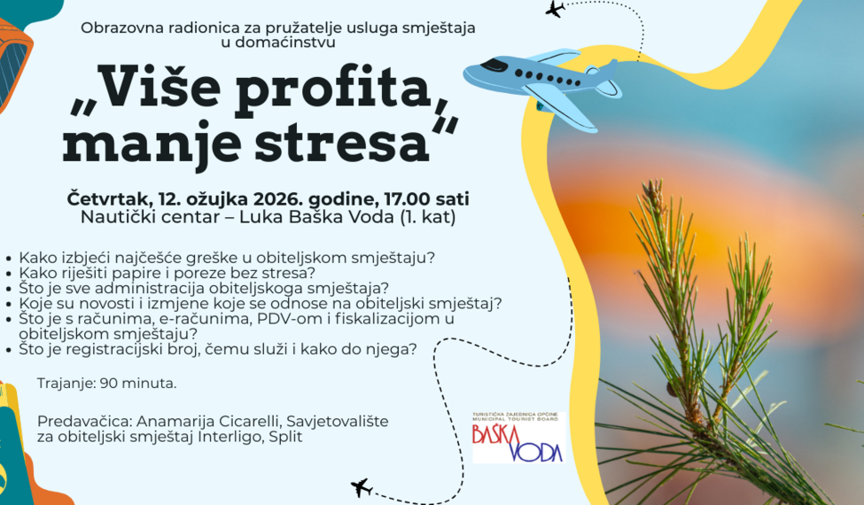 Radionica će se održati u četvrtak 12. ožujka s početkom u 17.00 sati u nautičkom centru, Luka Baška Voda (1. kat).